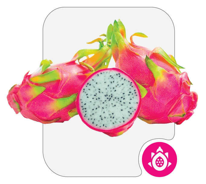 La pitahaya, también conocida como fruta del dragón, es una fruta tropical de aspecto exótico y vibrante. Su cáscara escamosa y colorida guarda una pulpa suave y jugosa, rica en nutrientes y con un sabor delicadamente dulce.