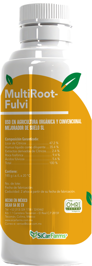 Materia orgánica soluble que incrementa la fertilidad y la proliferación de microorganismos simbióticos para la raíz.